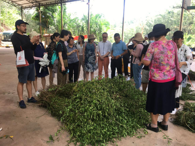 在勐腊县考察团参观了木本油料作物星油藤种植基地,与中国科学院西双版纳热带植物园的相关负责人和专家开展座谈交流;实地走访了省级非物质文化遗产项目——勐腊镇曼龙代村委会曼龙代小组“傣族织锦”,听取了传承人咪香应关于傣族织锦传统技艺文化以及傣族织锦工具、织锦工艺的介绍;深入补蚌村委会龙小组中草药基地,了解扶贫项目基本情况和产业带动建档拉卡户和收益等情况;在勐腊竹英林下种植专业合作社,听取了创业女性负责人李进英对合作社基本情况的介绍;以及西双版纳云锰新兴天然橡胶有限公司勐腊销售点,了解调研公司基本状况以及产品和销售情况。