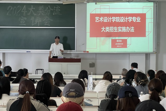 首先,吴文治向全体2024级设计学类员工详细解读了学院大类招生专业分流的工作实施办法、学院分流规则和具体志愿填报流程;强调了此次志愿的选择与填报是每位同学专业学习的起点,关系到未来的职业生涯规划以及就业机会。吴文治鼓励同学们结合自身兴趣、能力和职业目标,理性选择适合自己的专业方向。