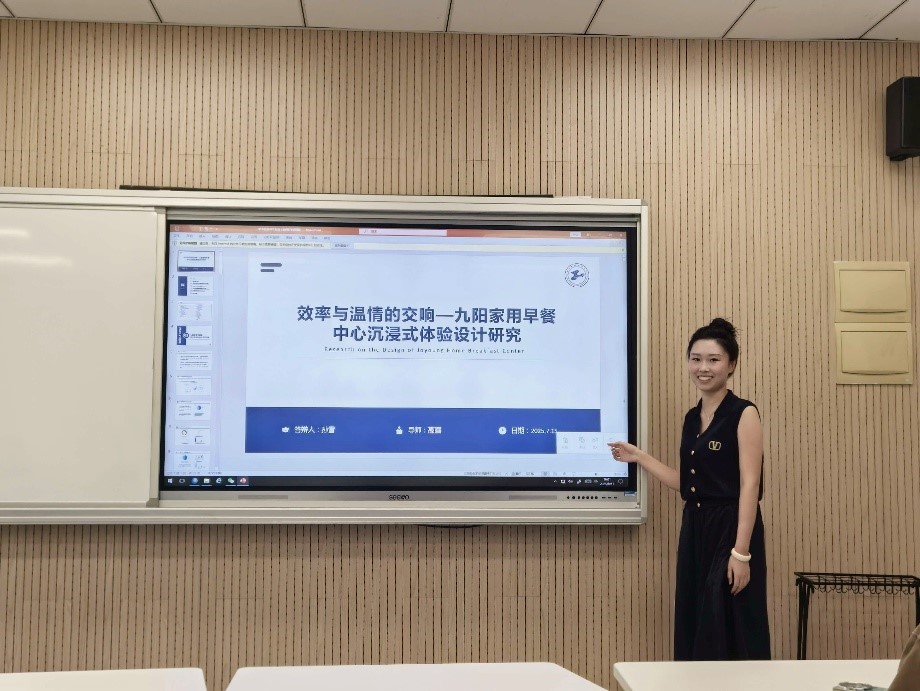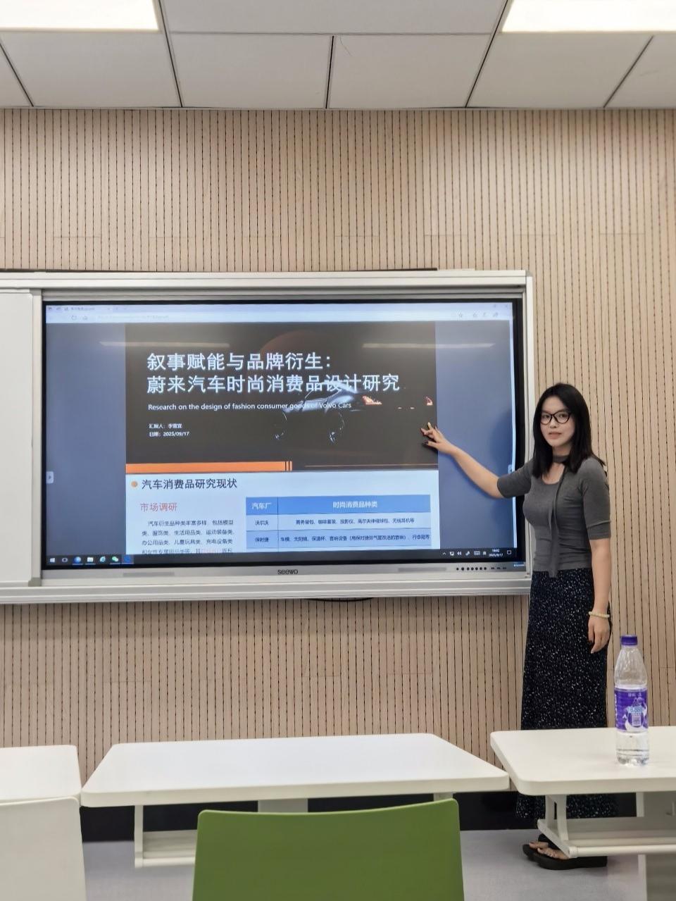 何倩楠同学在以《从 “感知重塑” 到 “体验共鸣:设计中叙事情感的传递机制与沉浸式体验构建路径》为题的汇报中聚焦叙事情感传递与沉浸式体验构建,旨在推动设计从功能载体升级为情感媒介。