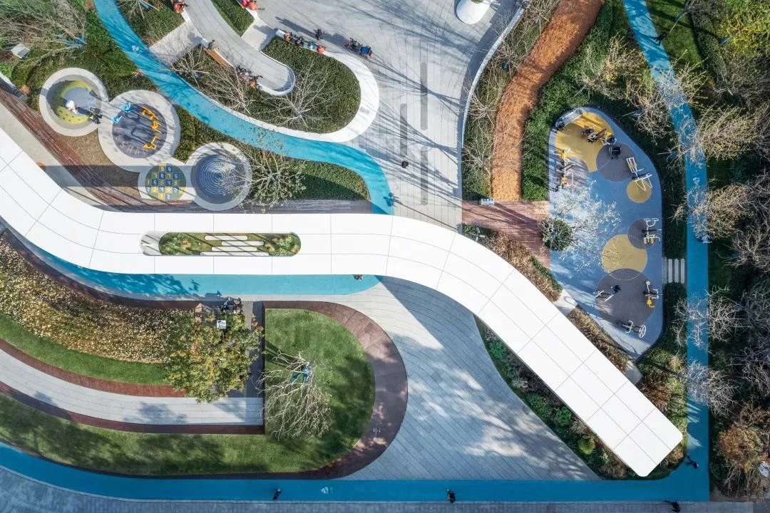 在介绍口袋公园设计时,孙博士强调了“微更新”理念的重要性。他通过简化重构曲线空间,植入环形慢跑道、全龄活动区等功能设施,并巧妙运用发光坐凳、旱喷广场等可互动景观,实现自然生态与公共生活的有机融合,打造出全龄友好、可游可憩的城市活力空间。