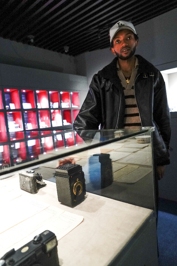 在等待胶片干燥的过程中,员工们来到博物馆的三楼参观陈列着收藏的早期来自全国各地相机厂生产的相机,如东方牌、珠江牌、红旗牌。了解了中国相机品牌的发展历史,看到展馆内成列来自全国各地生产的国产相机不禁感叹犹如一部部凝固时光的史书,静静诉说着中国摄影制造与艺术发展历程。