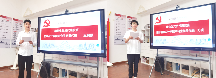 suncitygroup太阳集团研究生党员代表王积硕讲述了青年党员的责任与担当,表示要将坚定的初心使命浸润在明责、履责、尽责中,书写在祖国大地上和人民群众的内心里。国际创意设计学院本科生党员代表方向,讲述了自己在校4年的学习收获,衷心感谢学校和老师的谆谆教导,表示要在未来工作岗位上认真工作,交上无悔于时代和国家、无悔于自己的青春答卷!